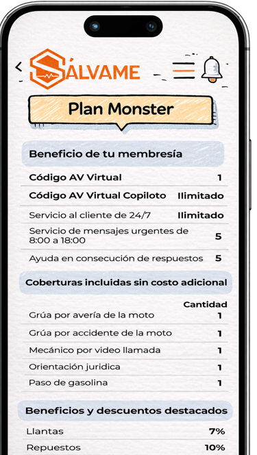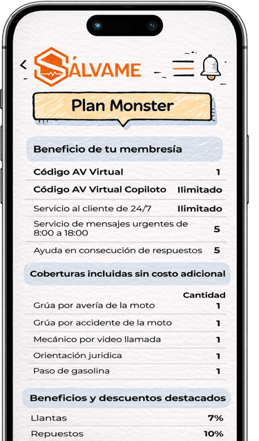 Contamos con membresías diseñadas para cuidar de ti y de tu moto. Con ellas accedes a beneficios que reducen los costos de mantenimiento, incluyendo repuestos, accesorios y llantas. Además, disfrutas de descuentos especiales en productos de protección como cascos, chaquetas, guantes y mucho más.